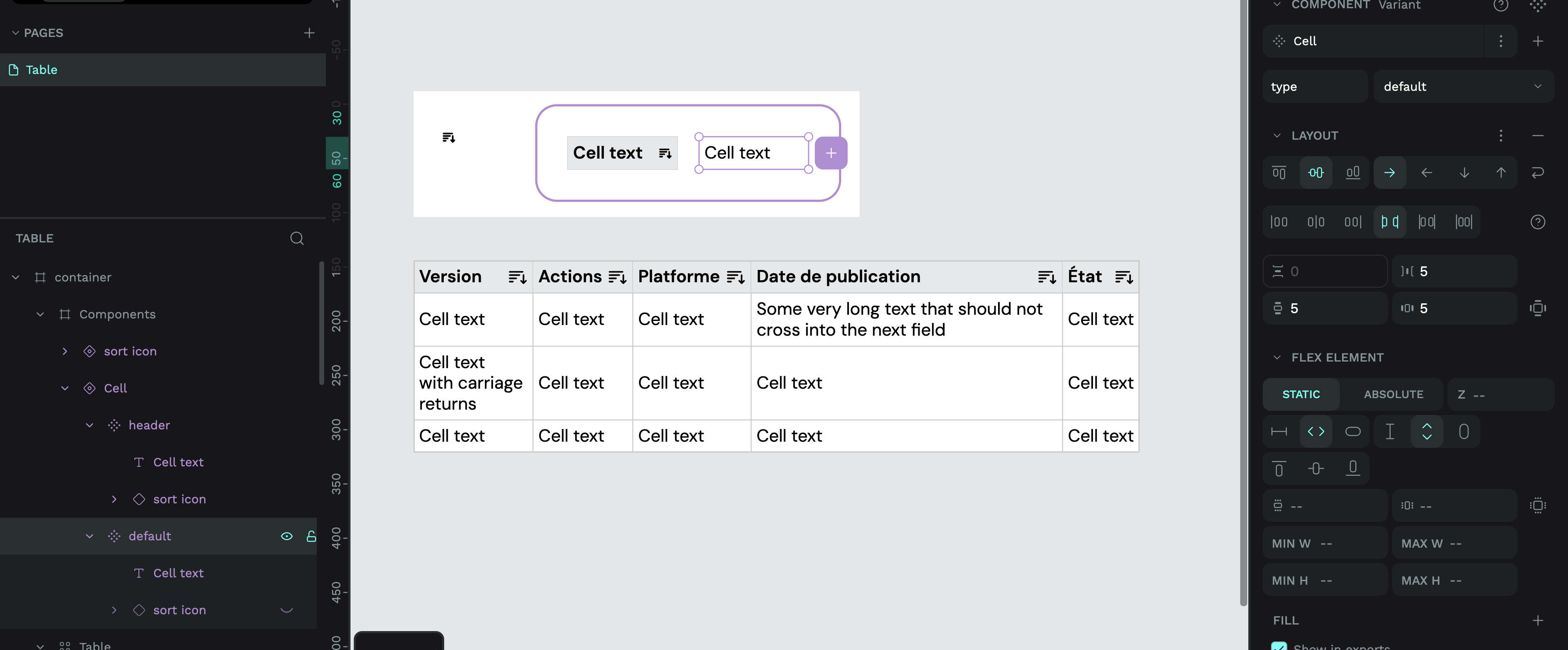 The cells content is a component (text + icon like “sort column”)