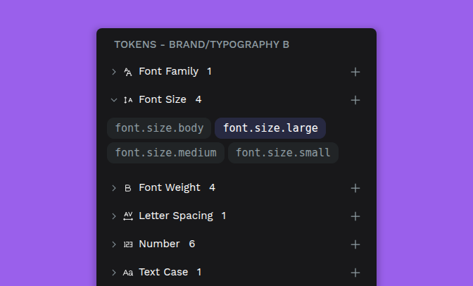 No more, no less than six new token types, significantly boosting your ability to manage design decisions, particularly in typography: Font Family, Font Weight, Text Case, Text Decoration, Letter Spacing token, and Number token (for unitless values).
