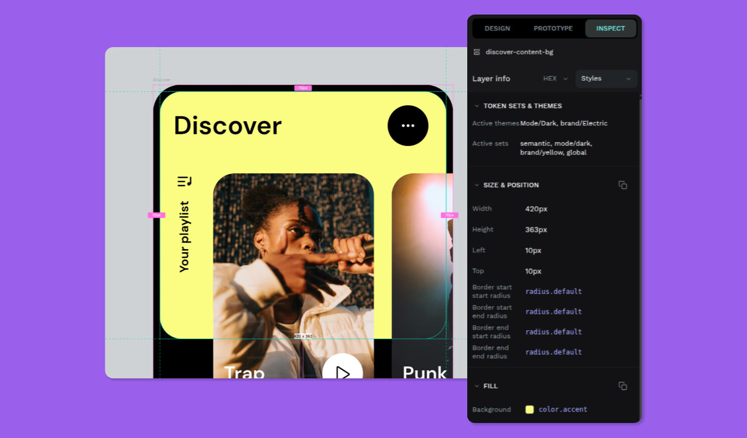 See applied design tokens directly in the inspect panel