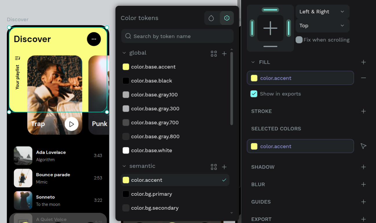 Design systems should be both powerful and effortless to use. This release brings design tokens closer to where you work, making them easier to apply and easier to understand**.** Your color tokens now appear directly in the properties sidebar, making it faster to apply or unapply tokens from the design tab. No more digging: now you can use tokens within your design flow.