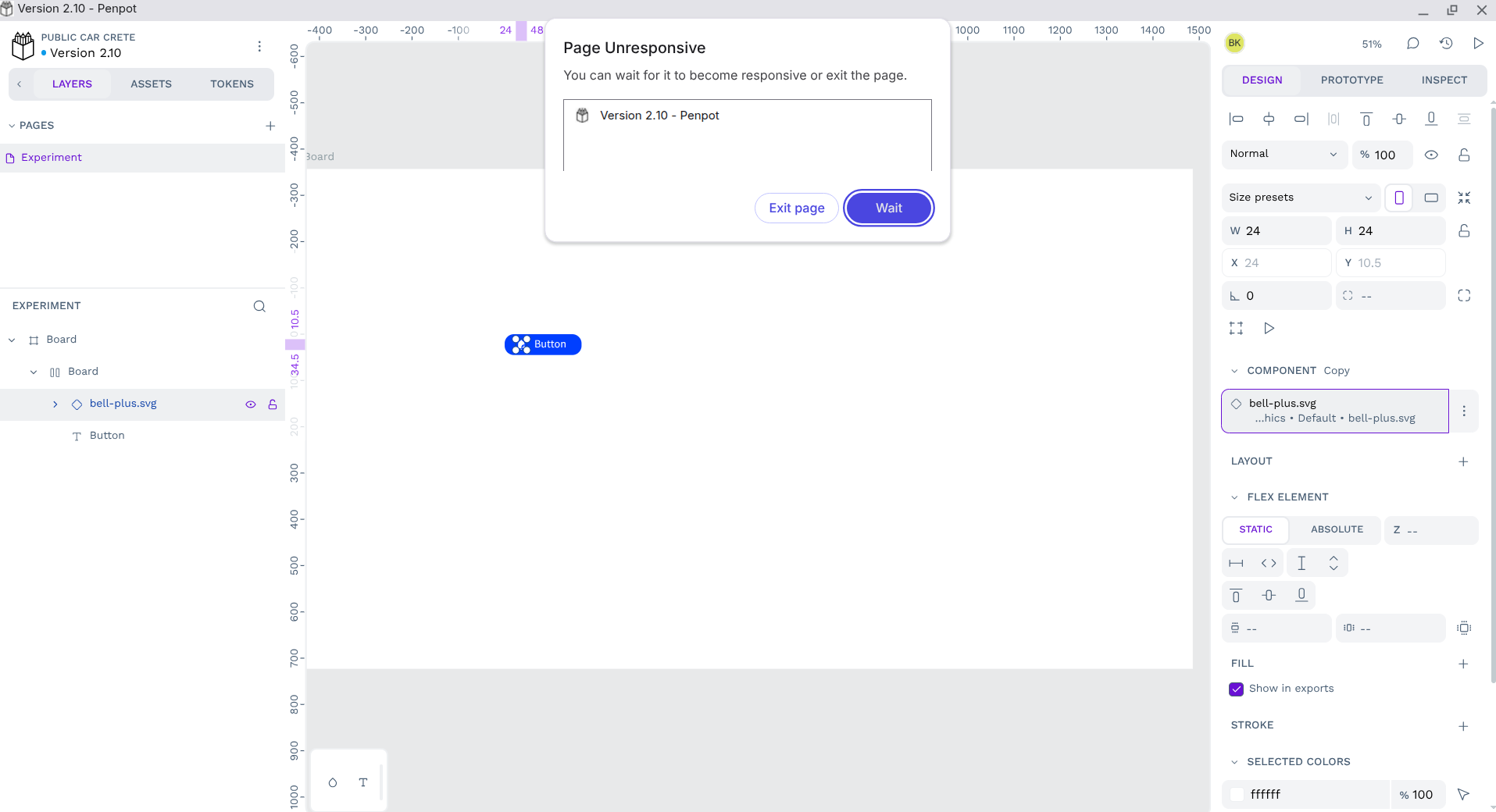 Hey @carolina.portugal I’m using it on Chrome, Brave and Edge. After using it today it occurs only if you try to switch a component within a large library of components (SVGs), when using the Material Design Icons. It breaks the browser with the message Wait or Exit the app.